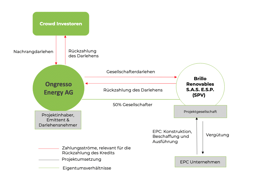 Die Rückzahlung des Darlehens erfolgt aus liquiden Mitteln, die Ongresso Energy im Rahmen der Rückzahlung des Gesellschafterdarlehen von Brillo Renovables erhält. Brillo Renovables erzielt seinerseits Einnahmen durch den Verkauf des erzeugten Stroms an einen der wichtigsten kolumbianischen Energieversorger, der den Strom an seine Kunden weiterverkauft, sowie an eine der führenden Supermarktketten auf dem amerikanischen Kontinent.